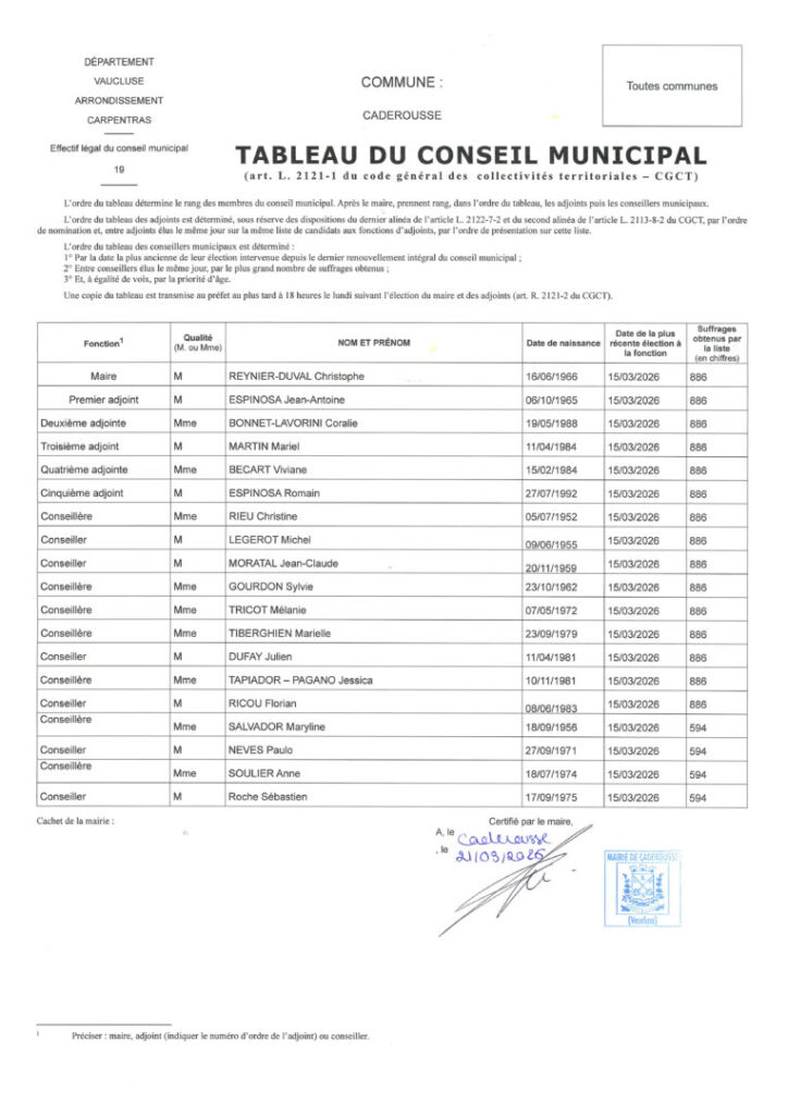 Tableau du Conseil Municipal